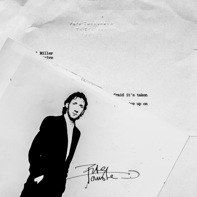 A long time ago, a kid in my class liked The Who, I liked him, and I reasoned that a highly informed and public adulation of the band would work in my favor. It didn’t. I moved on from the crush but not the music, true to the band’s main songwriter and guitarist, Pete Townshend. When I bought a double album of his solo rough cuts, an address in the liner notes prompted me to send him, via one of his handlers, a toe-curling handmade birthday card. Six months later, he wrote back.